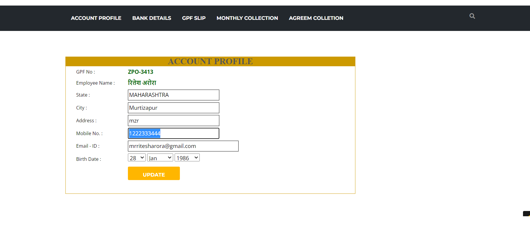 Step 3) After click on edit button in Step 2) you will check this page and change the data which you want to after changing data you will click on Update Button.