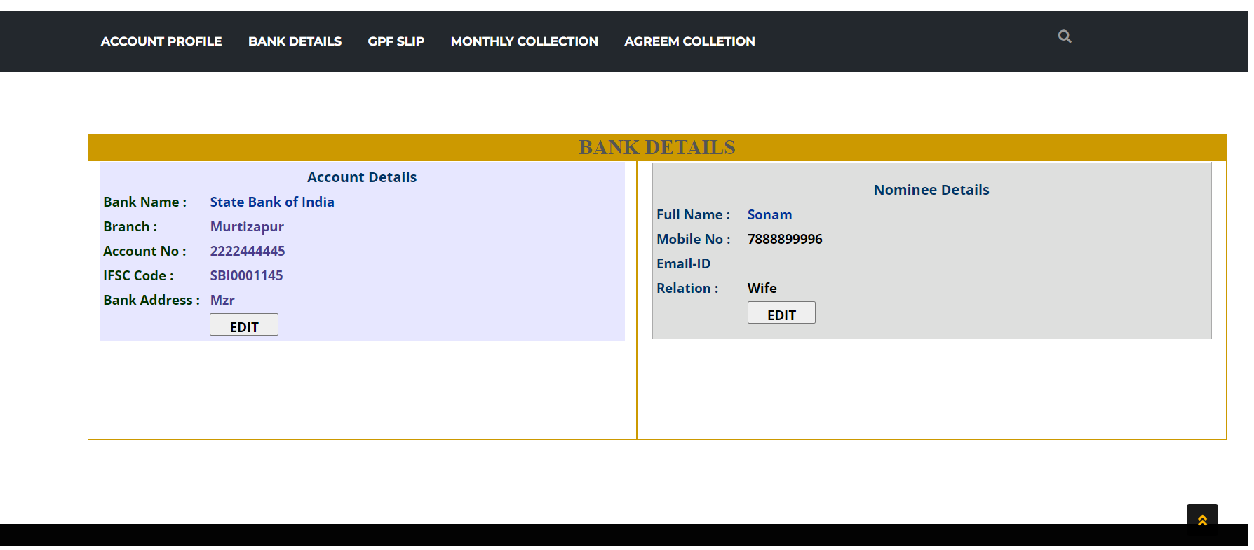 Step 3) After click on Submit button in Step 2) you will saw the fill data of bank details and nominee.
