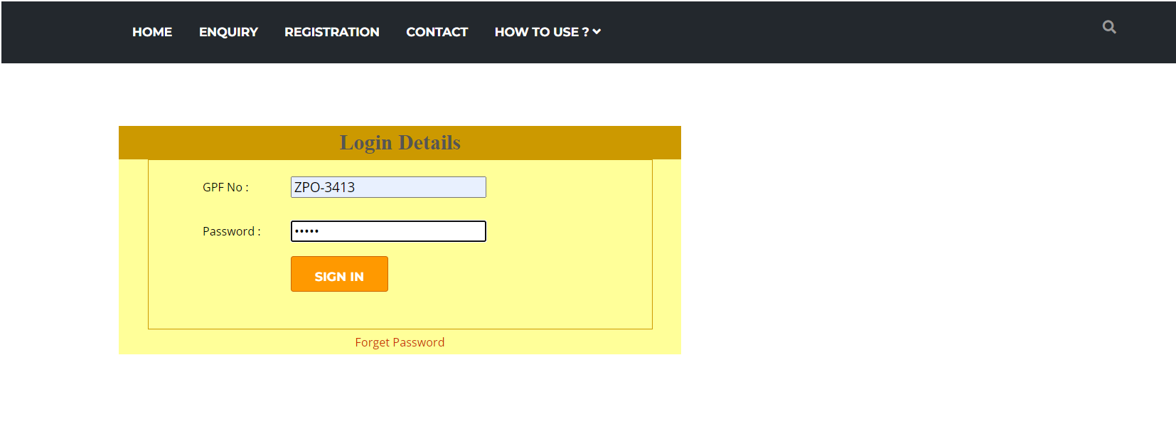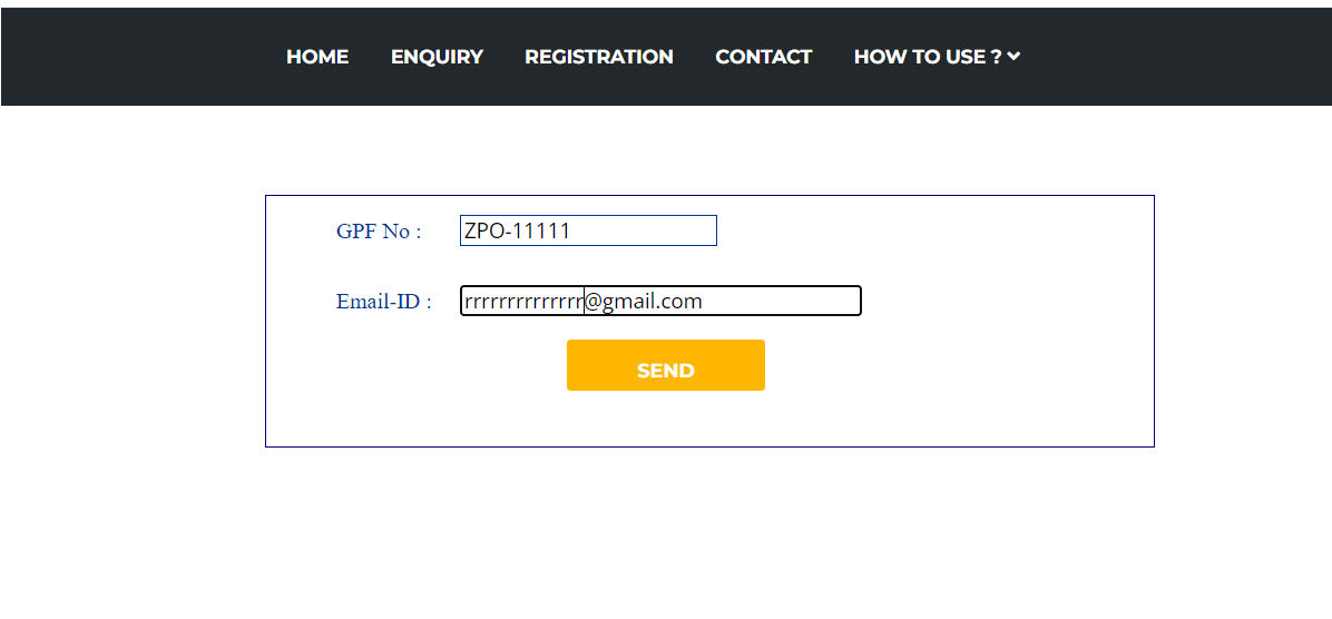 Step 2) After clicking yout saw this following Page.In this page you will enter your GPF No and registered mail ID which will enter in your account profile and click on send button.