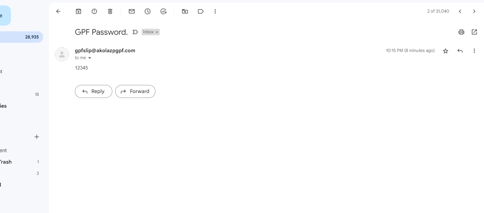 Step 4) After received the password sent message you will login in your mail-id check your password. (if you not recevied mail. check in spam mail.)